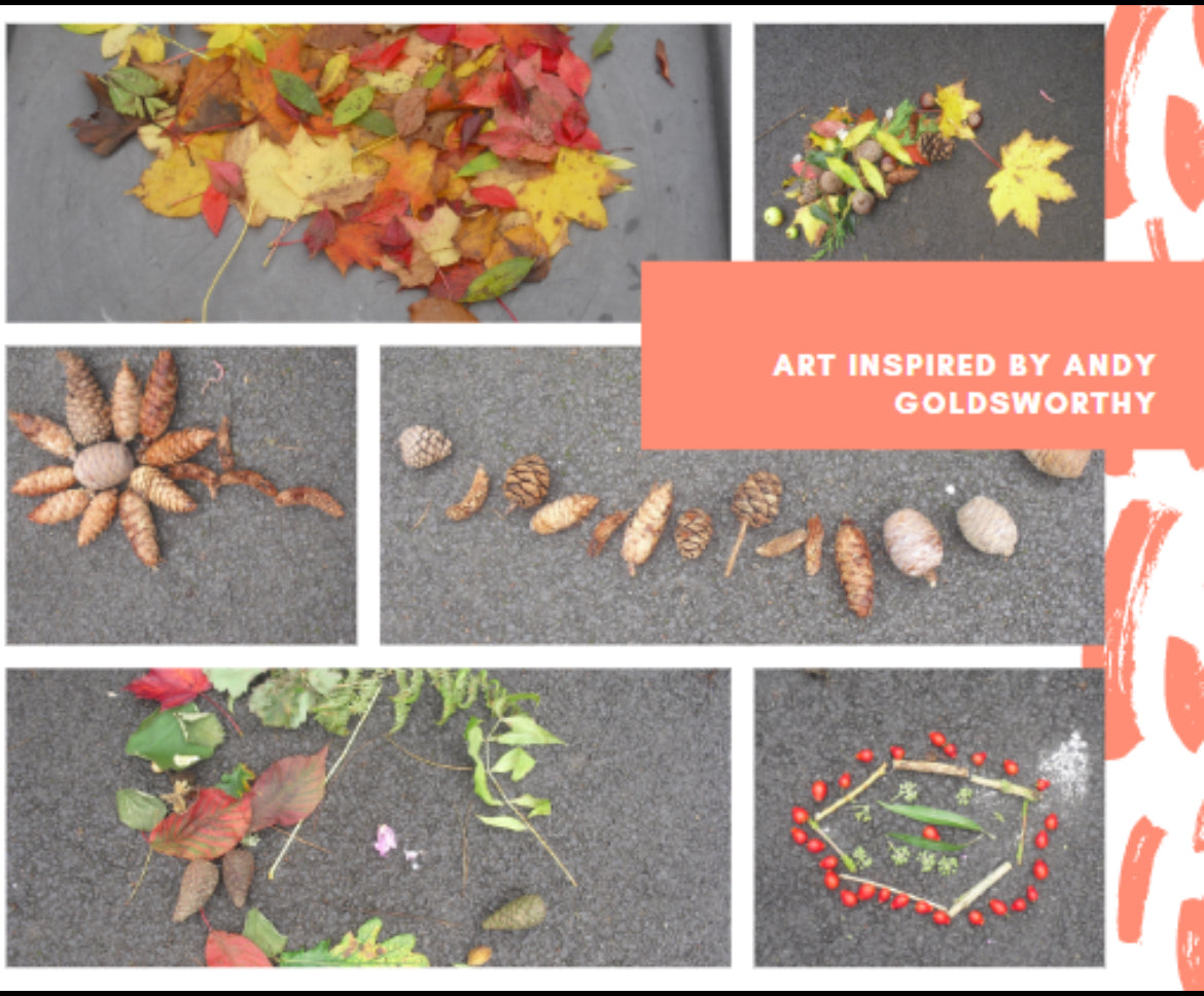 We went on a nature walk and collected natural objects to create Andy Goldsworthy inspired art outside.