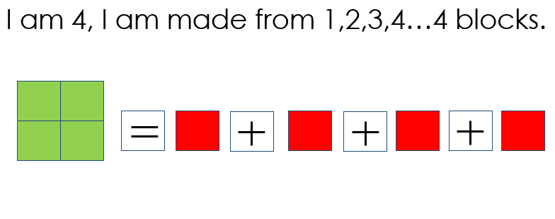 Each slide shows a pictoral representation of the stem sentences e.g. I am 4, I am 1,2,3,4…blocks.